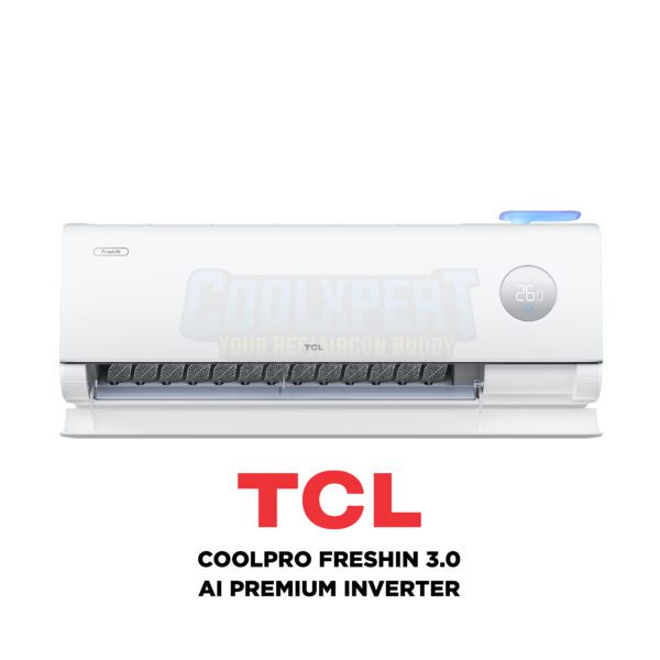 The TCL CoolPro FreshIN 3.0 AI Full DC Inverter is a high-end split type inverter air conditioner designed for smarter, healthier, and more efficient cooling. With FreshIN+ Technology, it delivers clean outdoor air indoors, while the 3.0 AI Inverter System ensures powerful cooling with exceptional energy savings. Its sleek premium design, whisper-quiet operation, and smart adaptive features making it the perfect choice for modern living spaces.